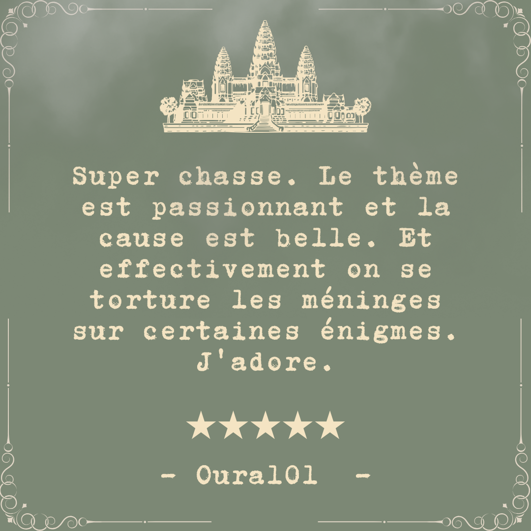 décryptage complet, vous trouverez l'emplacement du coffre caché quelque part au Cambodge et remporterez le trésor d'une valeur de 50.000€. -